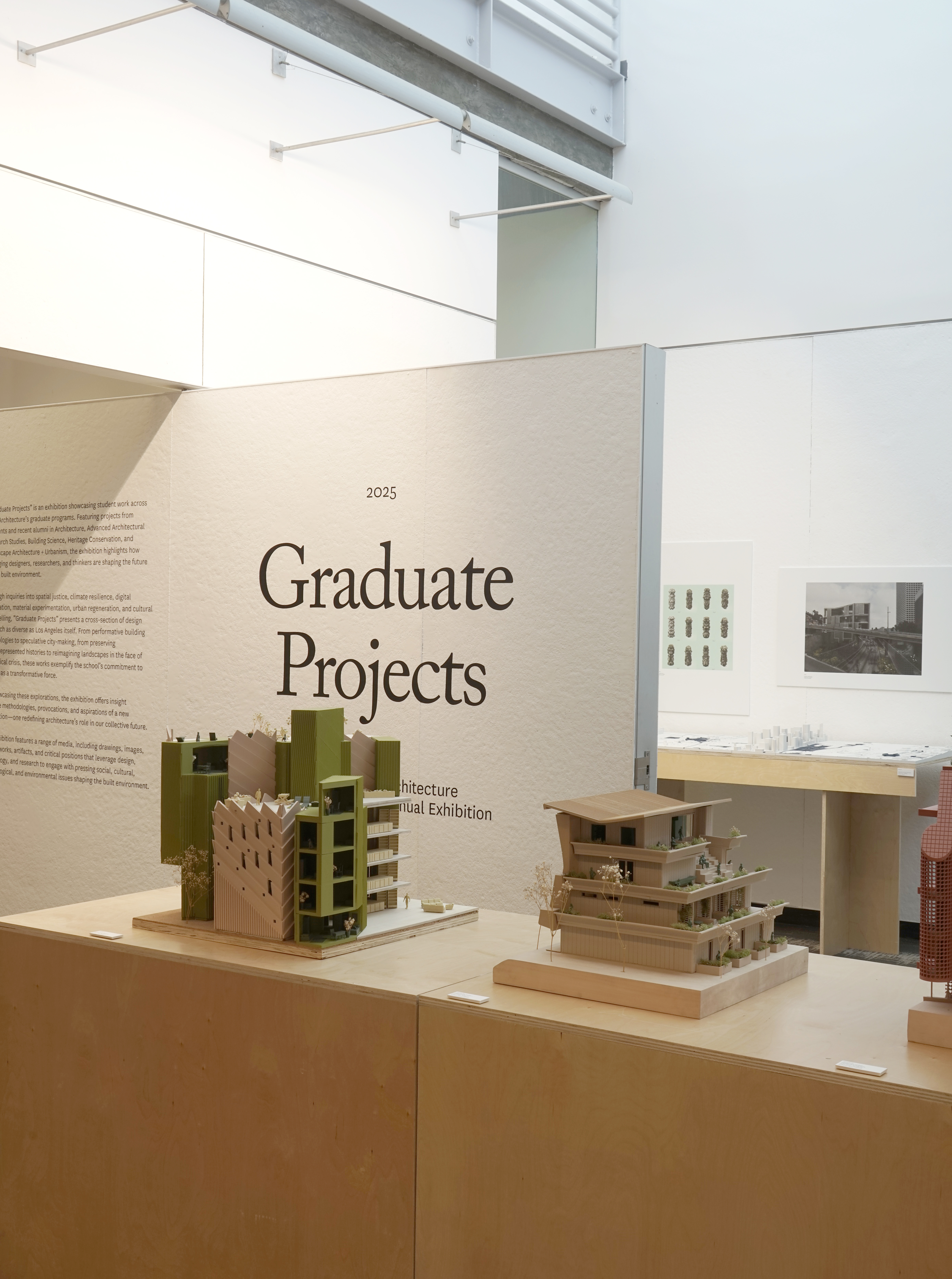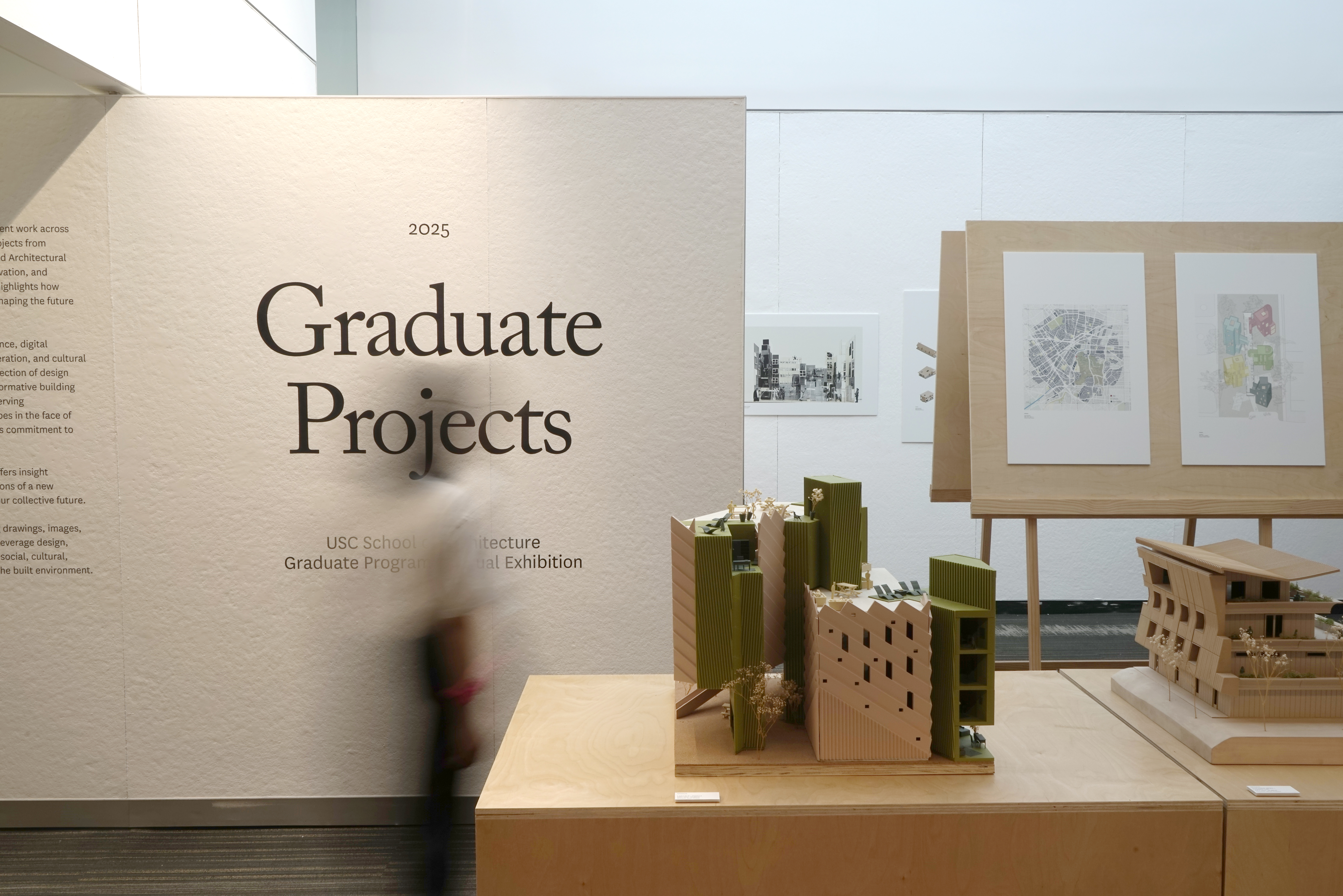 Graduate Projects is an exhibition showcasing student work across USC Architecture’s graduate programs. Featuring projects from students and recent alumni in Architecture, Advanced Architectural Research Studies, Building Science, Heritage Conservation, and Landscape Architecture + Urbanism, the exhibition highlights how emerging designers, researchers, and thinkers are shaping the future of the built environment.